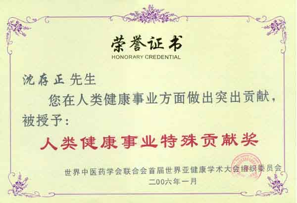 沈存正先生被授予人类健康事业特殊贡献奖